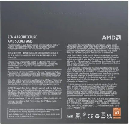 AMD – Ryzen 7 7700X 8-core – 16-Thread 4.5GHz (5.4 GHz Max Boost) Socket AM5 Desktop Processor – Silver