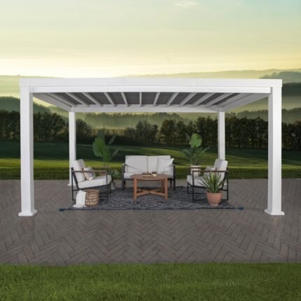 14×12 Stratford Traditional Steel Pergola With Sail Shade Soft Canopy