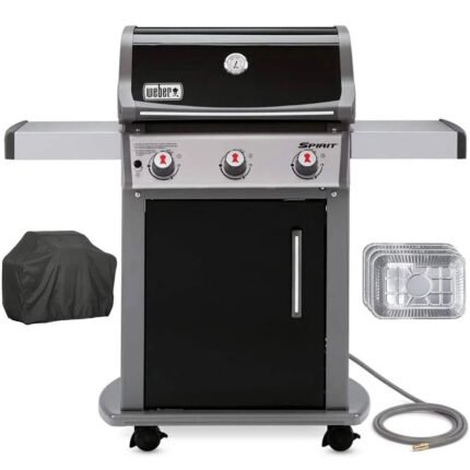 Weber 47510001 Spirit E-310 3-Burner Natural GAS Black Bundle with Generic Grill Cover Barbecue Drip Pans Set of 3