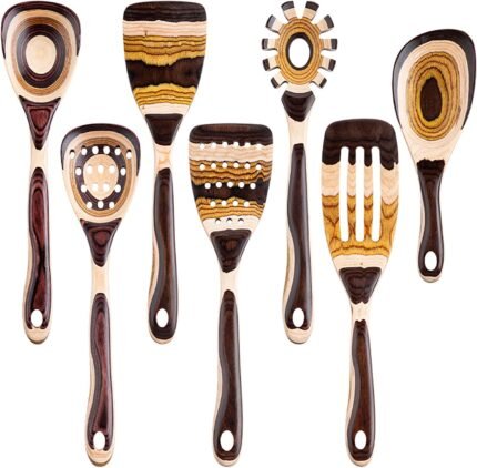 7-Piece Pakkawood Wooden Cooking Utensil Set – Brown Eco-Friendly Kitchen Spoons & Tools for Home Cooking