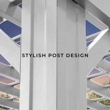 The Hawthorne Steel Pergola is Backyard Discovery’s state-of-the art addition to our patio collection, in a Contemporary White Finish. Our powder coated, galvanized steel construction makes the Hawthorne pergola maintenance free and rust resistant while offering protection against chipping, scratching, corrosion, and UV harm.