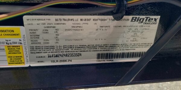 20 Foot Big Tex Landscaping Special Black Equipment Trailer (10LR-20BK-P4)