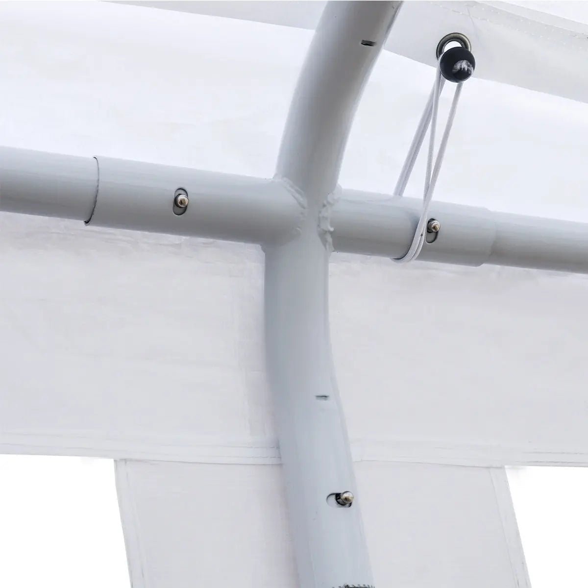 Made of durable, polyethylene (PE) tarpaulin cover that has a self-cleaning quality and comes in a gorgeous white colour that reflects UV rays and makes any location it occupies look sharp, neat and professional. Guests will be welcomed in with charm and your backyard will have a feeling of luxury no matter what the occasion.