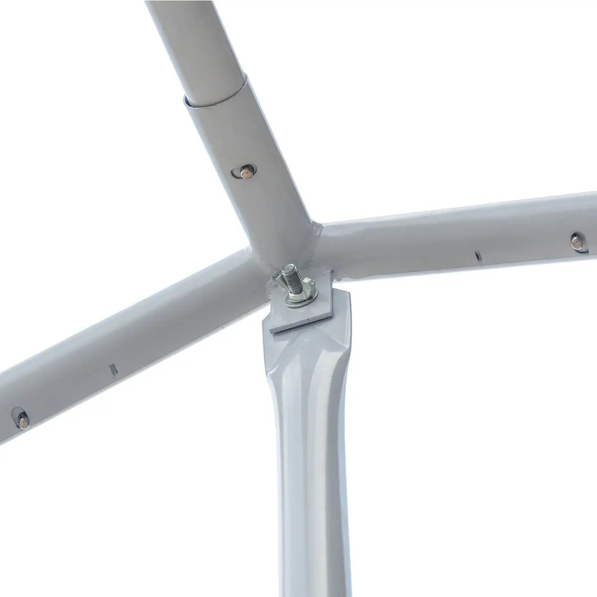 Convenient slip-fit steel tubing design is durable and easy to assemble while the stabilizing ground bars around the perimeter create a sturdy, dependable structure for your event. Other uses include outdoor markets, show and shines or equipment displays; the approximately 800 sq-ft space has limitless possibilities and ships free from our warehouse in Richmond, BC with a one-year manufacturer warranty.