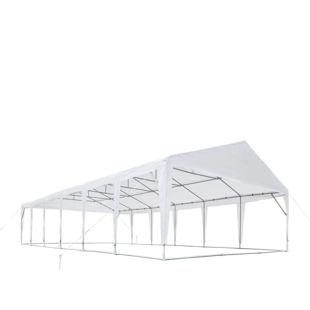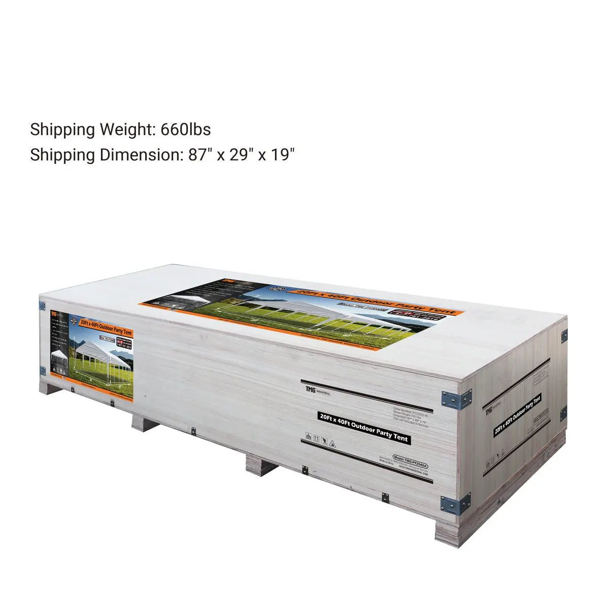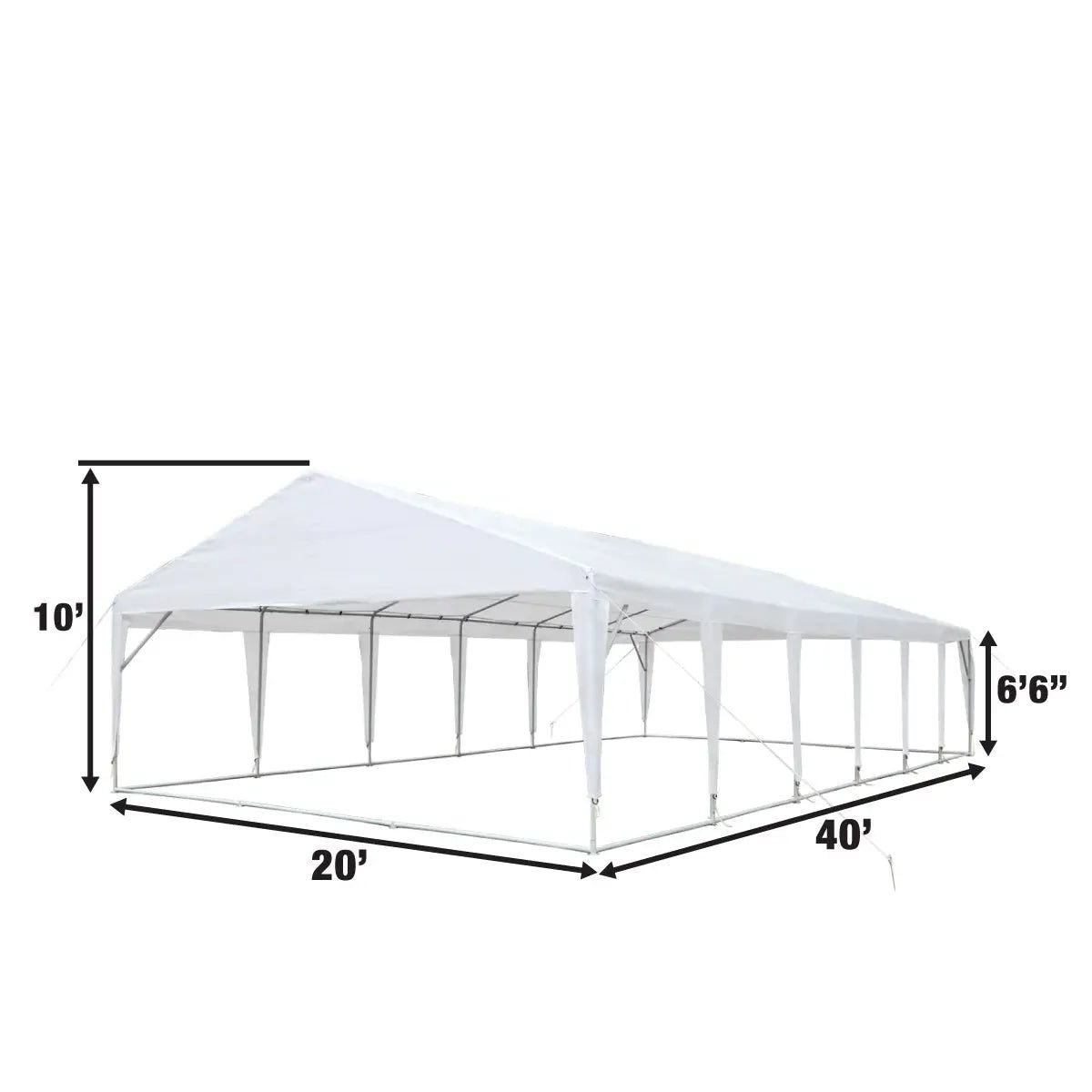The TMG-PT2040A Heavy-Duty Outdoor Party Tent is your elegant outdoor solution for parties, wedding receptions, BBQ’s, family gatherings or other social events. Create a beautiful atmosphere with the vibrant while colour and open sidewalls to allow fresh air and sunlight to permeate the surroundings. Wide open entry/exit space on either end offer easy in-and-out access for this tent’s 100-person seating capacity.