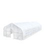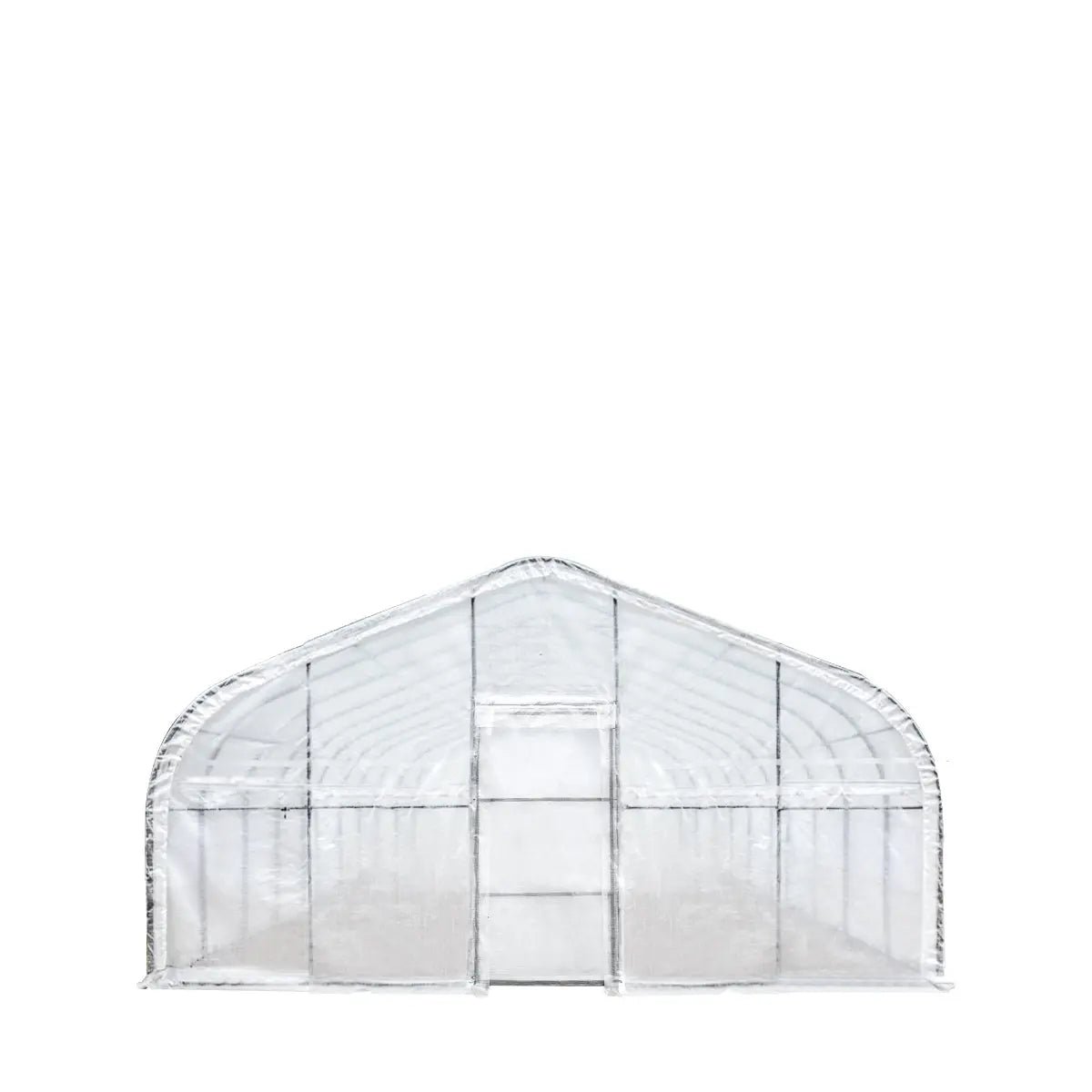 Steel tubes are added on the front and end walls to keep the cover tied down so you can ensure it stays secured. Your plants will have plenty of room to grow and flourish under the approximately 1000 sq-ft of covered space. Solar energy will seep through from all angles and be stored in the soil and inside the structure for a beautiful, budding ecosystem. An almost 4′ wide walk-through door allows you to easily transport materials, tools and new additions to and from the greenhouse.