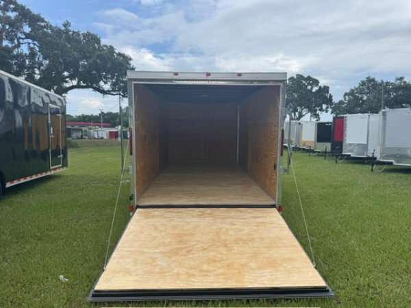 Description VIN #9768 8.5X16TA COLOR WHITE INTERIOR HEIGHT 84” EXTENDED TONGUE 60” 5200 LBS AXLES CYNERGY PRO SERIES – PLUS 16” O C ROOF MEMBERS .080 POLY LARGER OUTSIDE TRIM ONE PIECE ALUMINUM ROOF BLACKOUT PACKAGE ALL BLACK TRIM BLACK TRIM AROUND DOORS BLACK MOD WHEELS BLACK A T P FENDERS WING ON REAR REAR RAMP DOOR