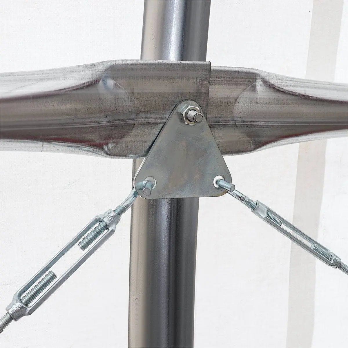 Double trusses also run throughout the whole interior which reinforces it for exceptional durability and stability. This structure is designed for installation on the outer or inner edges of your containers. For harsh weather areas or places with insufficient space, it’s recommended to use the outer edges of the container (so it is fully enclosed) to prevent snow buildup outside the structure.