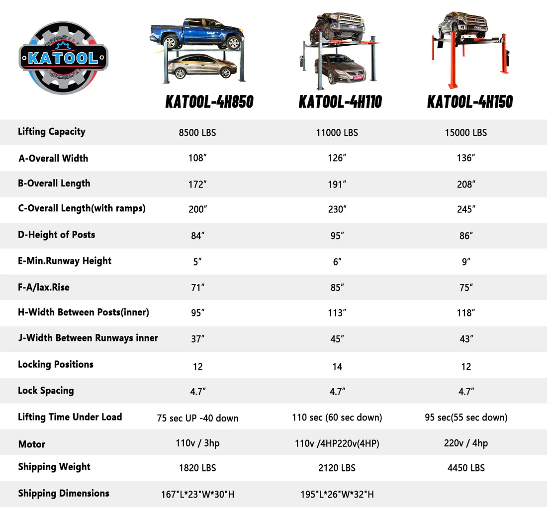 4H150 Heavy Duty Four Post Alignment Lift 15000lbs By KaTool