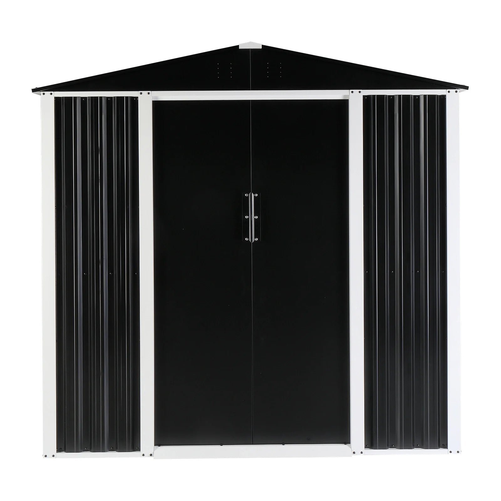 Maximize your outdoor storage with our sleek, black metal shed, perfect for organizing garden tools, lawn equipment, and pool supplies. Made from durable galvanized iron, this shed offers ample space and stylish functionality for your backyard or patio.