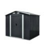 Galvanized corrugated metal sheet panels and an apex roof design are highly resistant to water and sun exposure making this shed durable and long lasting. Four built in air vents maintain a steady airflow throughout the structure, preventing overheating and allowing the escape of fumes or odours from garden products.