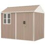 DOBA-MS86 offers versatile outdoor storage for tools, equipment, bikes, and more. Designed with a slanted metal roof, galvanized steel construction, and a lockable latch for security, this shed can withstand harsh weather conditions. It features double doors for easy access, a window for natural light, and ventilation to ensure proper airflow. Perfect for organizing your garden tools, lawn equipment, and seasonal supplies.
