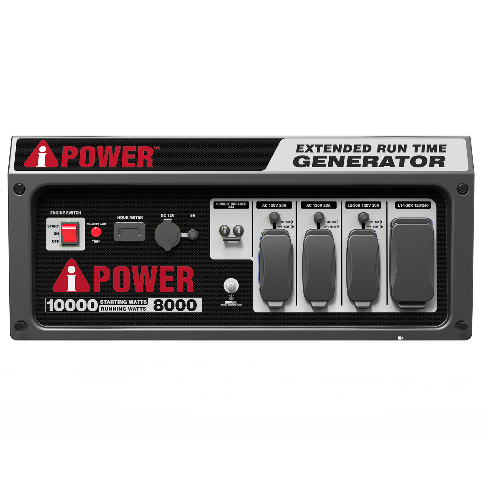 The A-iPower AP10000E Portable Generator produces up to 10,000 starting watts and 8,000 running watts. The heavy-duty 420cc 4-Stroke OHV engine is constructed of a durable cast iron sleeve, with a 10.5 gallon (40L) extra-large gas tank that keeps you powered through the day with a built-in fuel gauge and an automatic low oil shutdown.