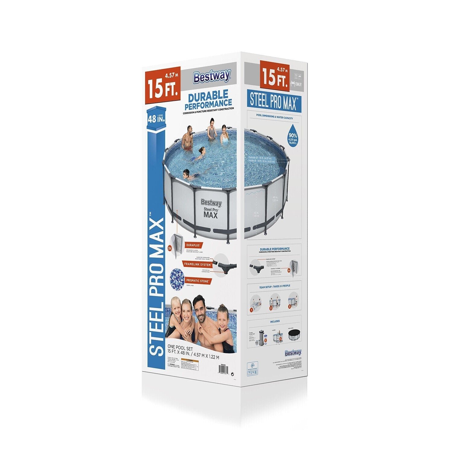 Bestway Steel Pro MAX 15’x48″ Round Above Ground Swimming Pool with Pump & Cover