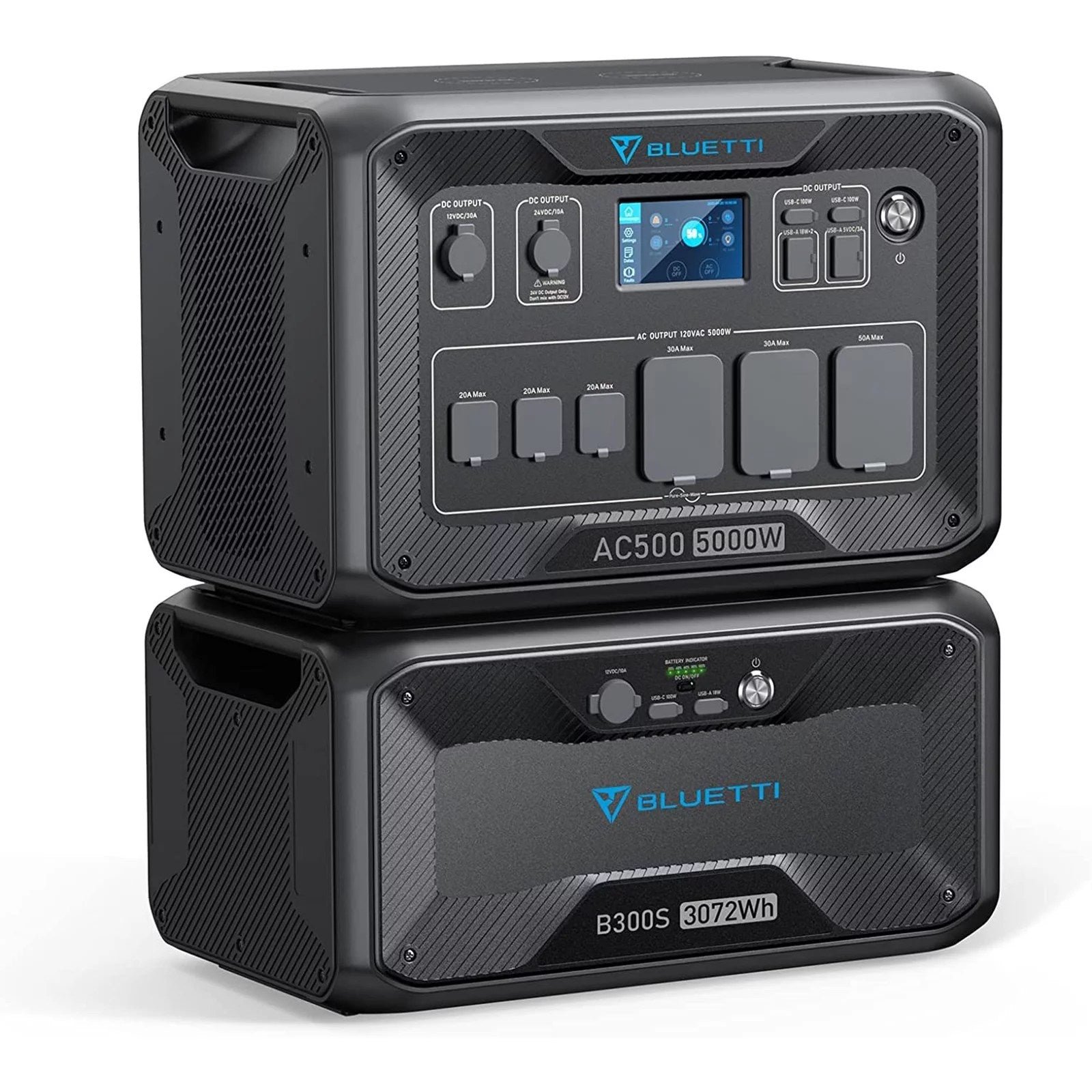 Bluetti Solar Power Station AC500 & B300S Expansion Battery, 3072Wh Capacity Solar Generator,5000W AC Output
