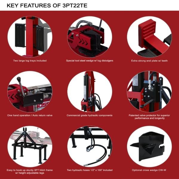 Note: The tonnage ratings on all 3-point splitters are rated at “maximum potential” per the title and description. The actual PSI of your tractor and other potential environmental conditions can impact actual tonnage and cycle times.