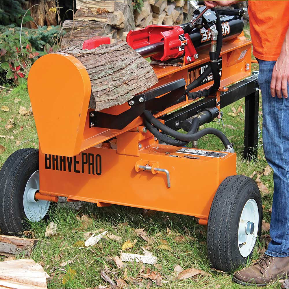 This Brave Pro VH1737GX 37 ton log splitter that has the convenient option to split Vertical and Horizontal. The orange powder coated wood splitters were designed with durability in mind.