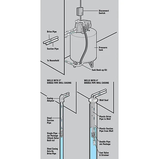 The CountyLine 1 HP 1-1/4 in. Convertible Cast Iron Jet Pump delivers water from 70 ft. or less. Featuring heavy-duty, rugged cast iron construction, this pump includes a pressure regulator, pressure gauge and ejector kit for 4 in. wells or larger. The jet pump comes backed by a 1 year limited warranty for purchasing assurance. It is a powerful 17 GPM, 115V/230V and 1 HP jet pump.