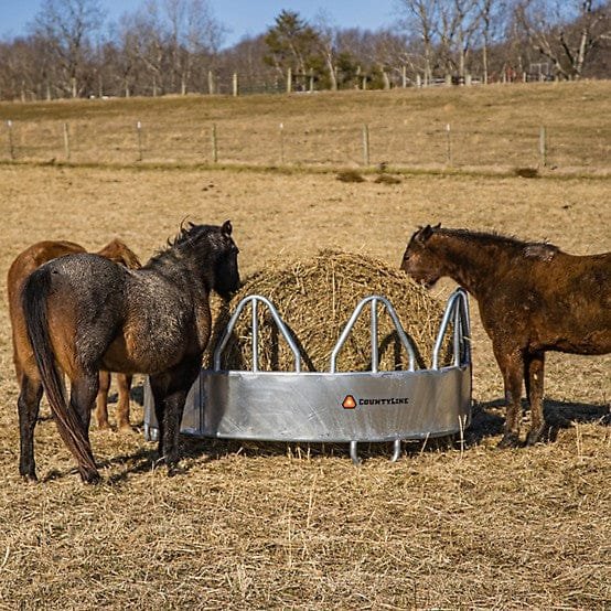 The CountyLine Equine Pro Galvanized Feeder With Hay Saver makes feeding your string easy and efficient. This 8 ft. diameter hay ring provides your horses with direct access to nutrition, while also keeping them off the bale.