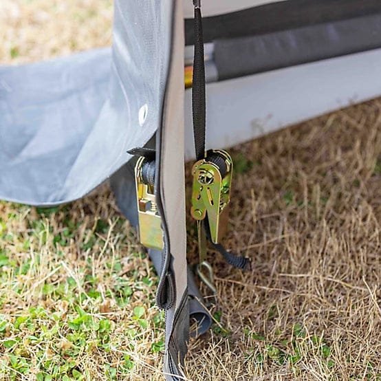 - Includes anchors to safely secure to ground