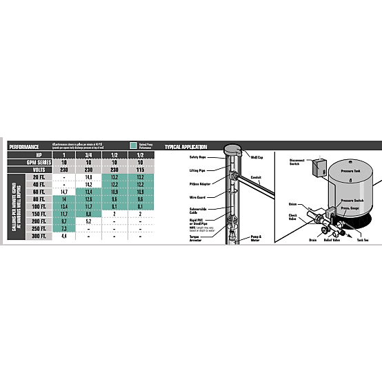 The CountyLine 2-Wire 3/4 HP 10 GPM Series 4 in. Submersible Pump is ideal for residential water systems and agricultural applications to 200 ft. depth to water or less. Made of heavy duty steel and featuring a proven floating stack impeller design, this sand resistance pump is built for high performance. The pump is rated for 230V and is backed by a 3 year limited warranty.