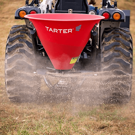 - Rugged fertilizer spreader made from an all-steel frame