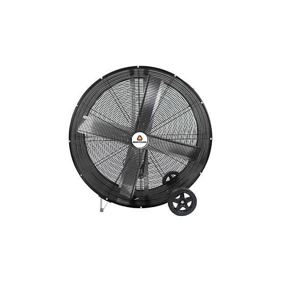 The CountyLine 36 in. Portable Barrel Fan is rugged, powerful and versatile. Use this fan to cool down people or machines, dry water-damaged areas, speed up the curing process of concrete or tile projects, and much more. Its ultra-quiet belt drive motor can produce up to 10,200 CFM and offers 2 speed settings to choose from. Handles and wheels make it easy to move the fan around as needed, and the high-velocity, low-vibration operation makes this fan suitable for a wide array of environments, including industrial environments that require rapid air movement. Satisfaction guaranteed.
