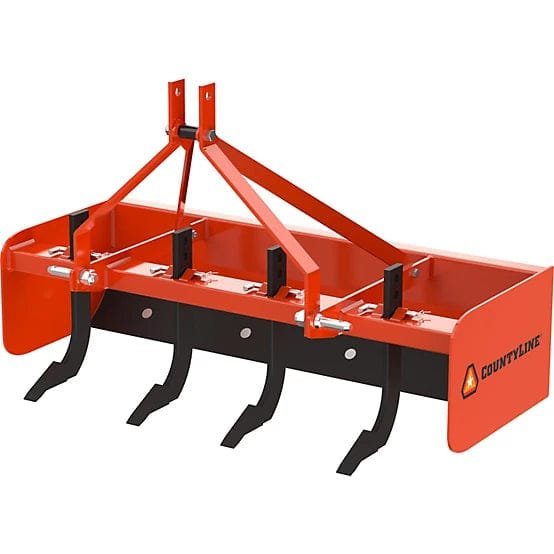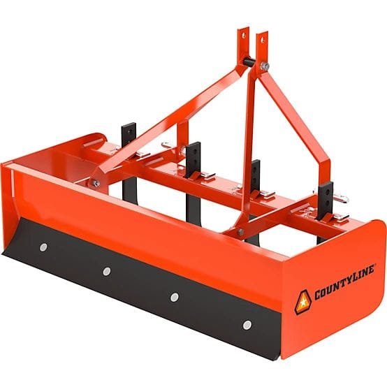 The CountyLine 4 ft. Box Blade is perfect for working gravel, topsoil, mulch or manure. Featuring a durable all steel construction and a rust resistant powder coated finish, this box blade is great for long lasting use. Designed with replaceable shanks and blades with a Cat 0 hookup. Rated for 45 HP. Shop more CountyLine parts and equipment.