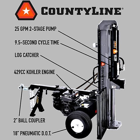 CountyLine 40-Ton Log Splitter uses a Kohler CommandPro 429cc engine which is known for having both industry-leading power and a user-friendly design. The Kohler is extremely easy to maintain with an accessible air filter and sparkplug. On top of that, it has dual ball bearing crankshaft design that makes starting up easy and ensure your engine will last longer.