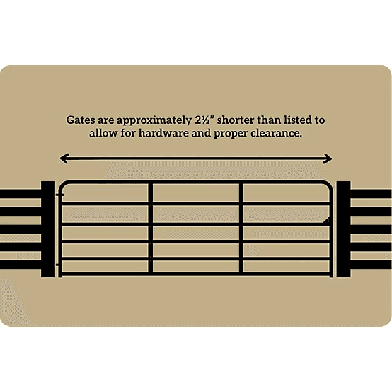The CountyLine Gate has 2 inch in diameter tubing to provide ultimate strength and protection. With continuous-welded saddle joints and a superior E-Coat finish, you can be sure that this gate will last for years.NOTE: All 2 tube gates are 21/2″ shorter than listed length to allow for hardware and proper clearance.