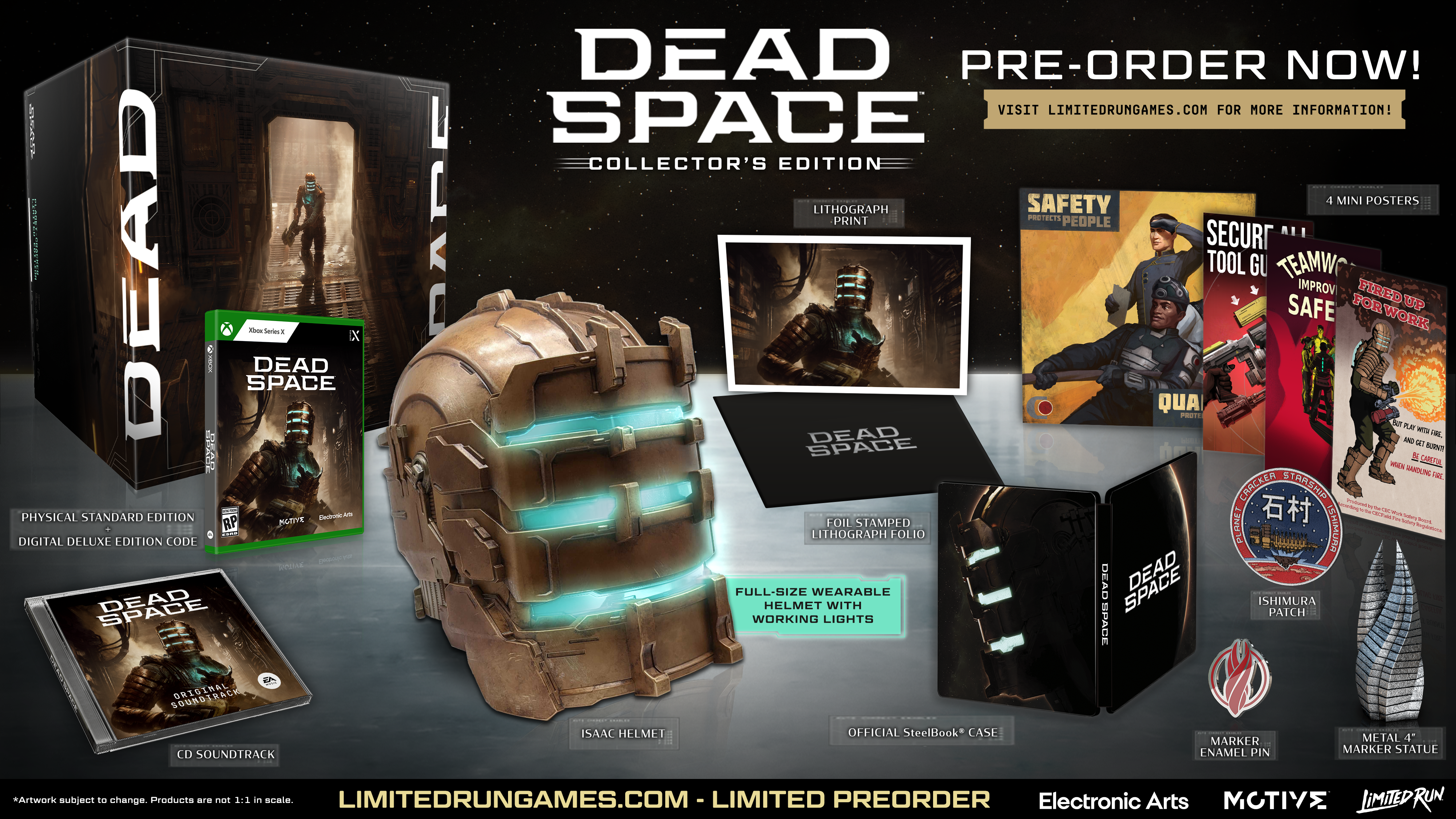 PLEASE NOTE: The Collector’s Edition contents are currently In Production and will releases after the official game release. The physical copy of Dead Space included in this release will ship separately on the game’s official release date. Shipping updates will be sent to you via email, through our monthly Digital Digest blog, and will be visible on your account page. All orders are considered final and can not be canceled.