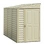 The side mate 4×8 vinyl shed is an easy-to-assemble outdoor storage solution designed to be placed on the side of your home. The contemporary design beautifies any backyard while maximizing storage space for yard tools or garden equipment. Constructed of durable all weather vinyl in a neutral ivory color, the side mate vinyl shed is maintenance free. It will never need painting or treating. It will not rust, dent, rot, mildew or fade. It is also fire retardant and much quieter in the rain than metal storage sheds. The wall columns are reinforced with a solid metal structure, giving the vinyl shed a lot of strength and making it easy to hang shelves or garden tools inside. The foundation kit provides a galvanized metal foundation. It eases the installation process, ensures a square shed and elevates your floor off the ground. With the foundation kit you’ll be able to build your shed the day you receive it.
