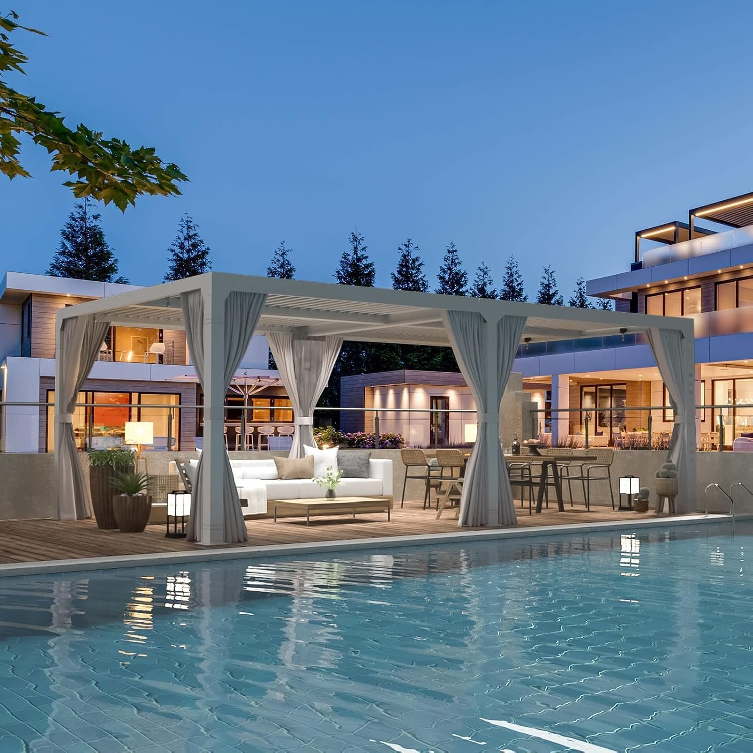 Erommy Outdoor Louvered Pergola Gazebo with Adjustable Aluminum Rainproof Roof