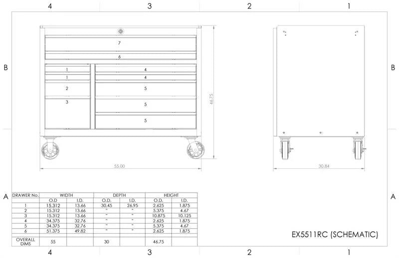 - Double channel, spot welded support brackets under each drawer prevents sagging or warping