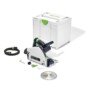 The TS 55 FEQ-F-Plus is Festool’s masterpiece—a premium plunge-action circular saw that performs like a high-quality table saw in an ultra-compact, portable system. With concentrated torque and redesigned, longer-lasting blades, this model cuts even faster and more precisely. With a Festool Guide Rail (e.g. #73382, sold separately), it cuts straight, with zero splintering on either face of the stock. The edge of the guide rail remains on the cut line, regardless of bevel angle, making setups quick and intuitive. The flat saw housing and redesigned flat waste-side splinterguard let you cut within 1/2” of walls and other obstacles, and the splinterguard need not be removed for bevel cuts. You also get micro-adjustable depth of cut, and an expanded bevel range of -1° to 47°.