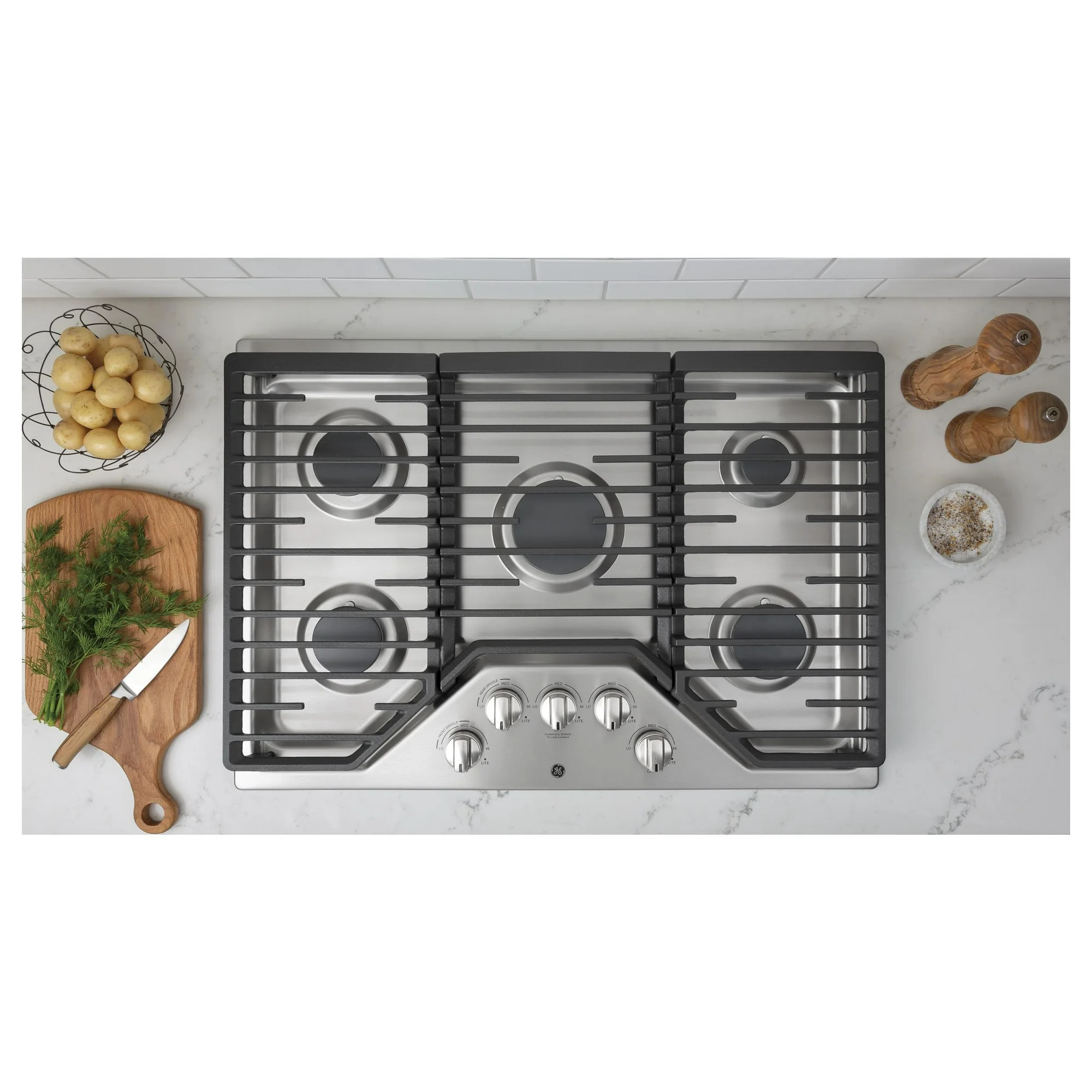 30 Inch Gas Cooktop with Power Boil, Simmer Burner, Continuous Grates, 5 Sealed Burners and ADA Compliant.