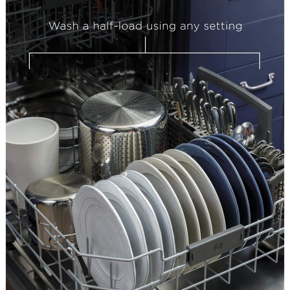 Your GE Adora Built In Dishwasher in Stainless Steel also has a Stainless Steel interior. Quickly adjust the upper rack 2 in. up or down to accommodate tall glassware and plates with plenty of room in the bottom rack for large platters and cookie sheets. Wash a true half-load in either the upper or lower rack without sacrificing cycles and options available on a full wash. GE appliances provide up-to-date technology and exceptional quality to simplify the way you live. With a timeless appearance, this family of appliances is ideal for your family. And, coming from one of the most trusted names in America, you know that this entire selection of appliances is as advanced as it is practical.
