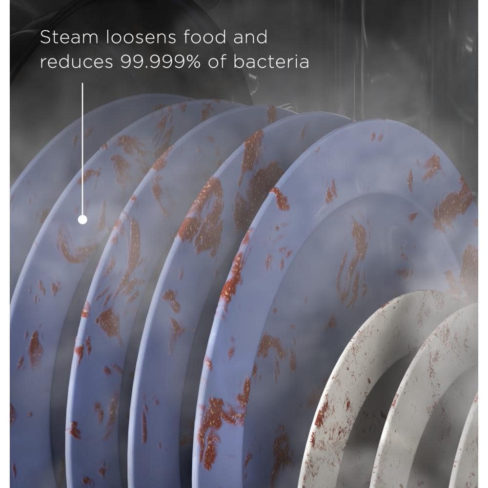 - Steam + Sani – Loosens tough soils before any cycle virtually eliminating the need for soaking or pre-rinsing dishes. Plus a High-temperature rinse sanitizes and reduces 99.999% of bacteria found on dishes