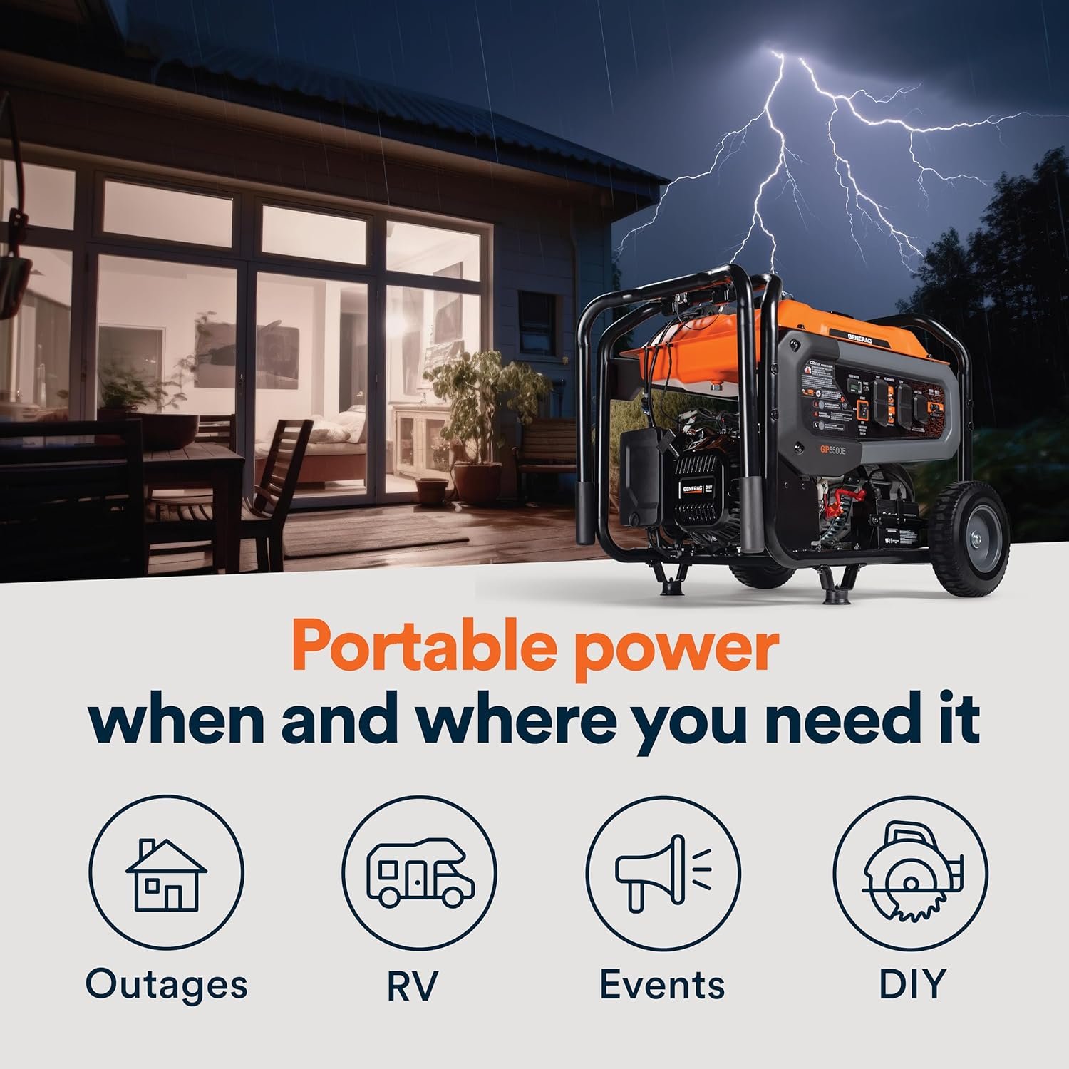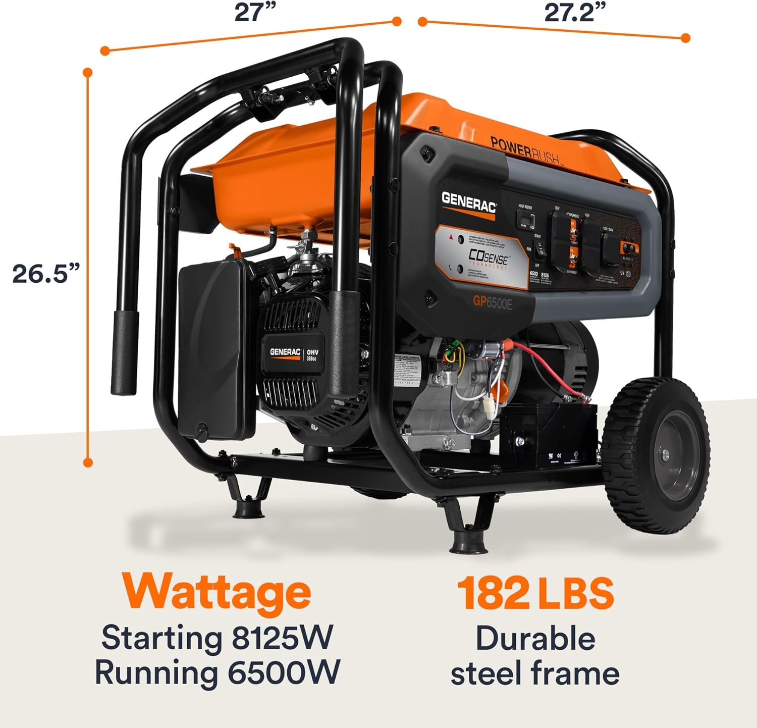 • High Power Output – Features PowerRush™ Advanced Technology for 40% more starting capacity, easily handling heavy electrical loads for home, emergency, or recreational use.