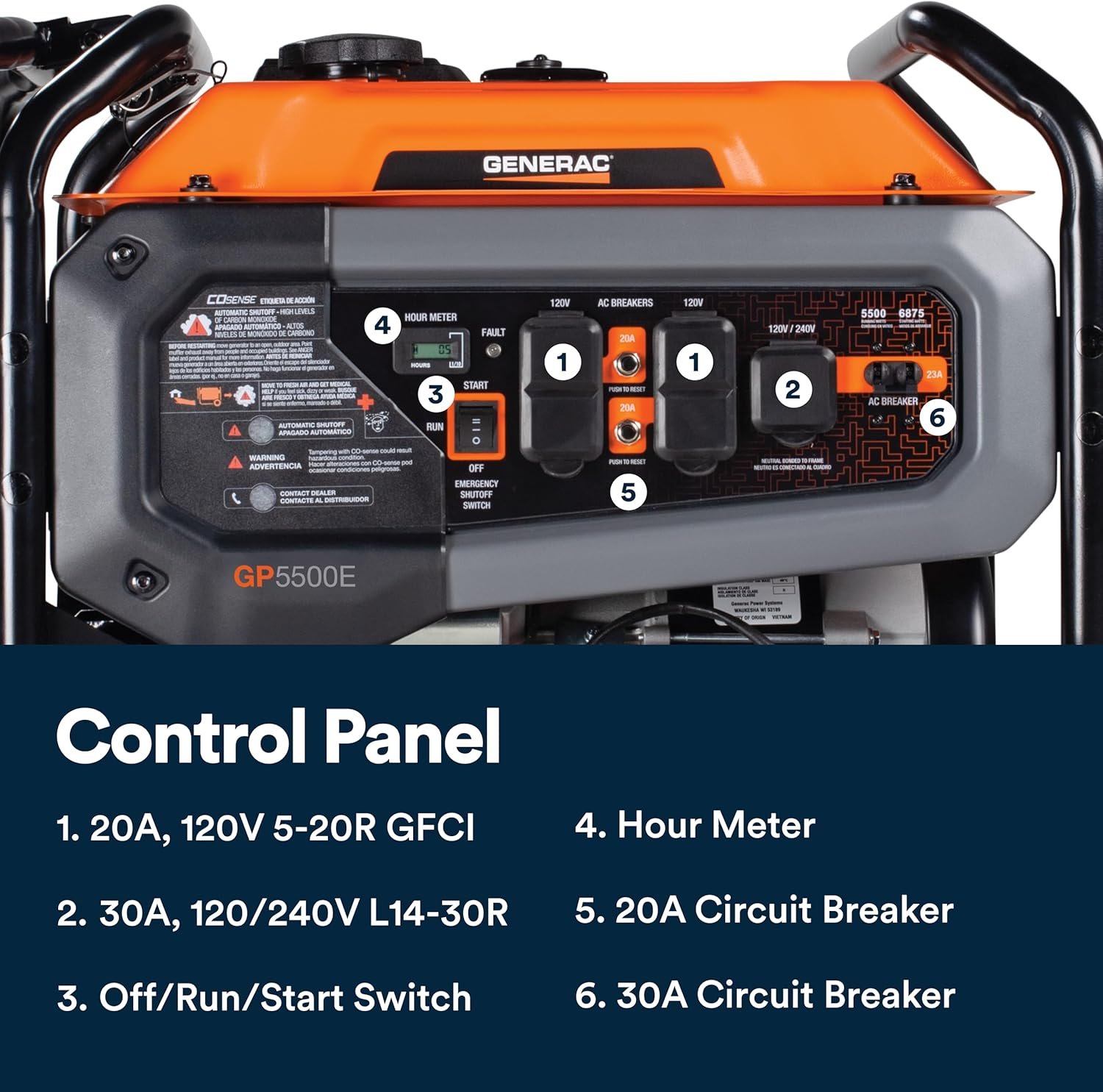 • CO Safety ProtectionCOsense® Technology detects dangerous carbon monoxide levels and automatically shuts off the generator to keep you and your family safe.