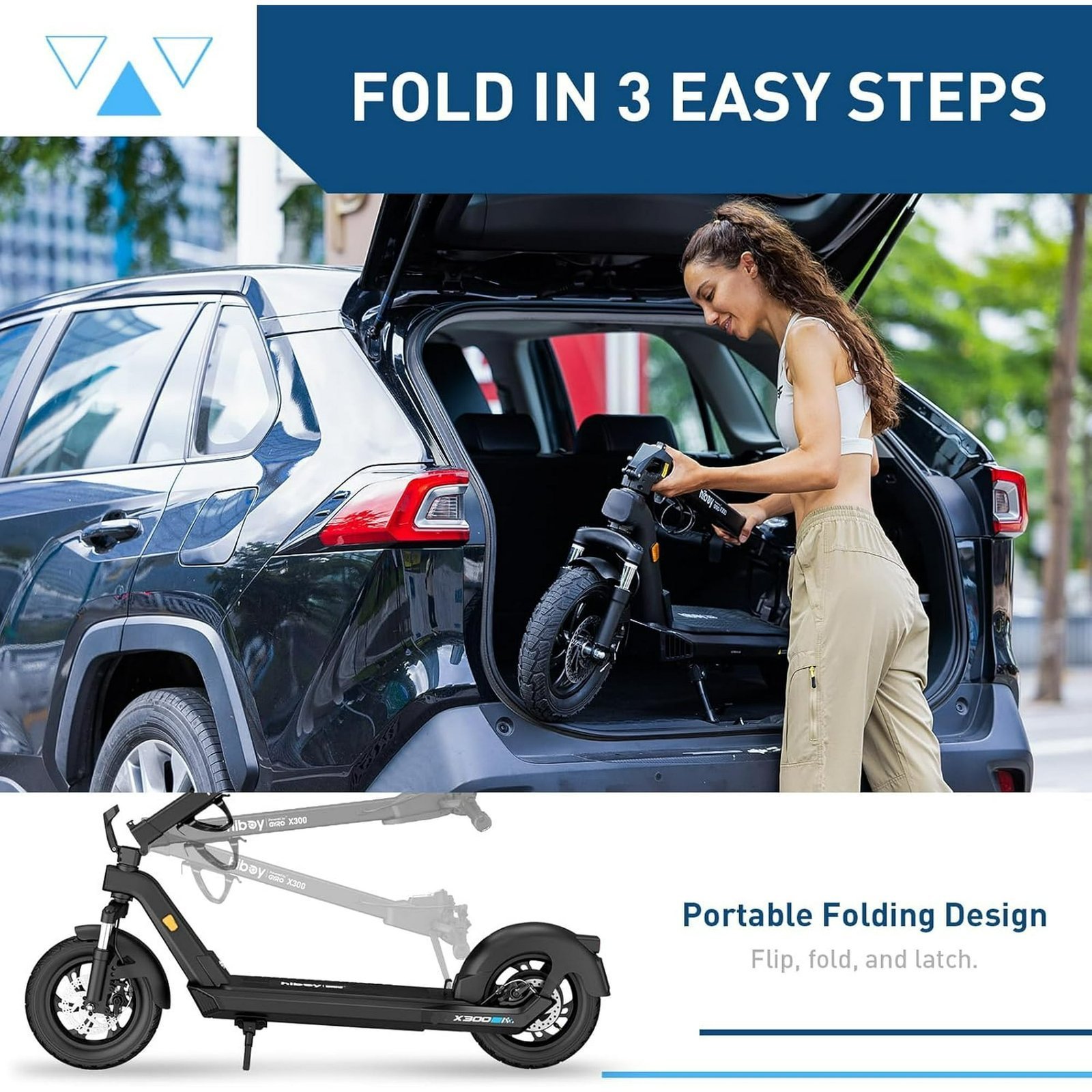 Ultimate Stability and Speed – X300 electric scooter has three different riding modes (Eco: 13MPH, D: 18MPH, S: 23MPH). Dual braking system(disc braking and eABS regenerative anti-lock braking) ensures your safety and brings you a more comfortable and safer riding experience.