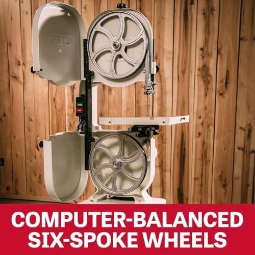 The JWBS-14CS gives you plenty of space and the necessary capacity to take on a range of projects. It offers a six-inch depth resaw capacity for cutting larger pieces of wood, 6 x 13-1/2-inch cutting capacity, and a generously sized, 15 x 15-inch offset cast-iron table for more work area in front of the blade. The table also tilts 45 degrees to the right and 10 degrees to the left to accommodate a range of materials and jobs.Cast-Iron Frame and Balanced Wheels for Vibration-Free Operation