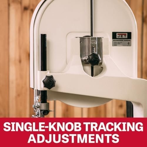 With its simple, straightforward design and powerful features, the JET 708115K JWBS-14CS 14-Inch 1 HP Woodworking Bandsaw with Graphite Guide Blocks is ideal for home shop use by serious hobbyists or craftspeople. This handy tool includes a fully enclosed stand and dust chute, requires minimal set-up time out of the box, and provides years of solid, heavy-duty use.
