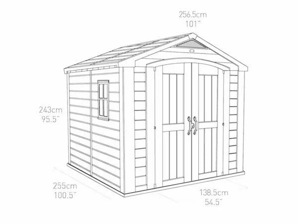 The Keter Factor Shed 8 x 8ft is a UV stabilised double door storage building that is deep enough for bikes, high enough for ladders, and features 2 wide doors for easy access.