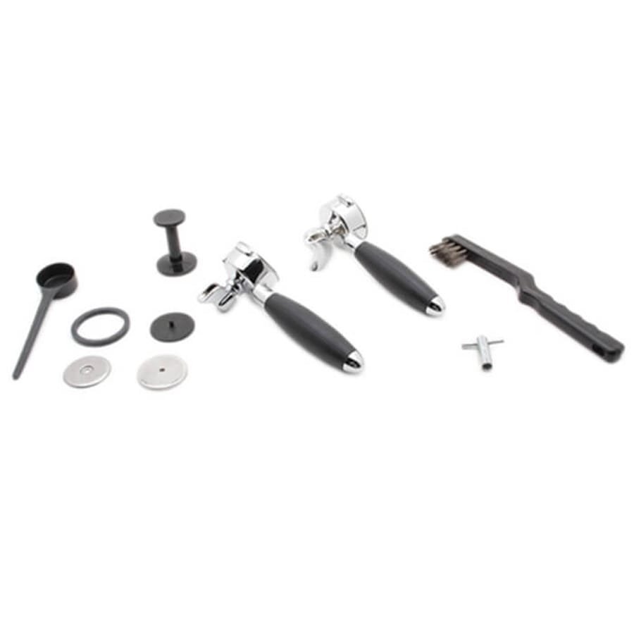 The top cover has been redesigned to eliminate the Plexi cup guard. The new top is much more user friendly; the cup guard could easily break, leaving a gap around the edges. This also lowers the overall height of the machine to just 15″. The portafilters that come with the machine have also been redesigned. The machine comes standard with our famous 4 holes 0.9 mm steam tip.
