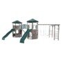 - 2-9′ wavy slides, steering wheel, trapeze, 2 arched climbers, 2 car maps, 2 swings, a bridge and an anchor kit