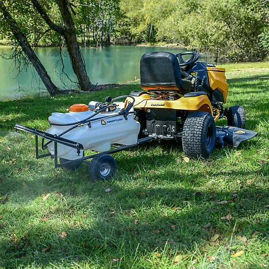 The CountyLine 25 gal. Tow-Behind ATV/UTV Sprayer has a universal hitch that’s compatible with most ATVs, UTVs and lawn tractors. Once attached to your vehicle, this sprayer makes quick work of treating gardens, ponds, fence lines, pastures and more. It features a 25 gal. tank made of durable plastic and an 18 in. deluxe spray gun with adjustable nozzle. Whether you need a steady stream or a wide mist, this sprayer makes it easy to find the best settings for the job at hand. Its 12V Delavan chemical-resistant pump operates at a rate of 2.2 GPM for reliable use. Complete with a powder-coat steel trailer frame, this tow-behind sprayer is ideal for traversing difficult terrains around your property. A 10 ft. detachable power harness with battery clips comes included with the sprayer.