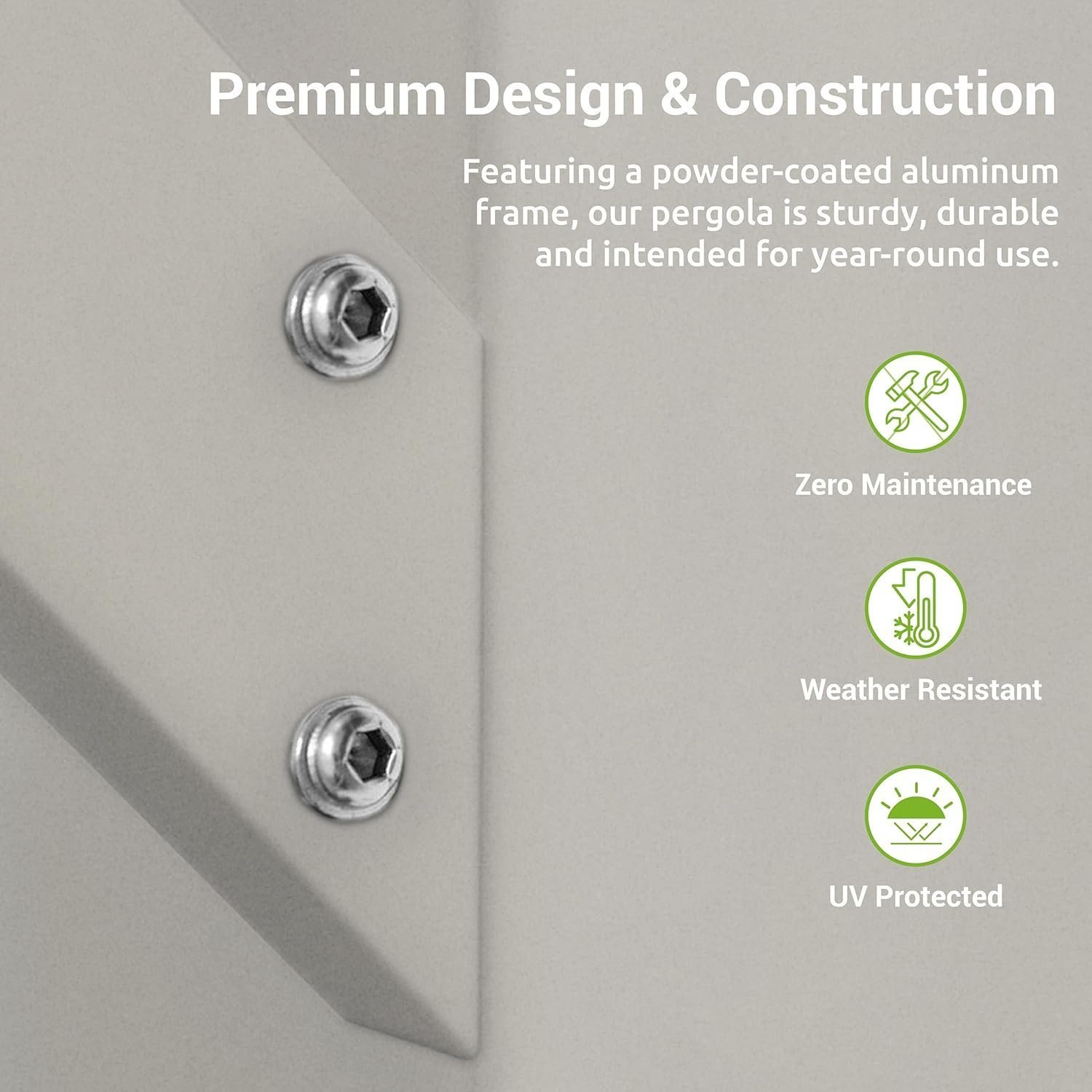 QUALITY MATERIALS: The Florence Pergola is built to last. Compared to our competition our aluminum is 20% thicker, our canopy is 8x heavier, and our warranty is 3x longer. Made of heavy-gauge aluminum, the rust-resistant frame will guarantee stability and durability for year-round use for many years to come.