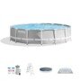 Enjoy hours of outdoor fun with the Intex® Prism Frame™ 14ft X 42in pool. It is constructed with puncture-resistant 3-ply durable material. It features all of the great benefits of Metal Frame pools, and are enhanced with strong powder-coated steel tubing and stylish and upscale looking liner color. Hydro Aeration® Technology is incorporated into the cartridge filter pump providing improved circulation and filtration, improved water clarity, and increased negative ions at the water surface. Follow these 3 steps for easy assembly. 1) Lay out the liner for your pool on flat, level ground. 2) Assemble the frame for your pool. 3) Fill your pool with water and enjoy. It comes with a 1,000 gal cartridge filter pump, ladder. Water capacity is 3,357 gallons (90%) and it is ready for water in 45 minutes.
