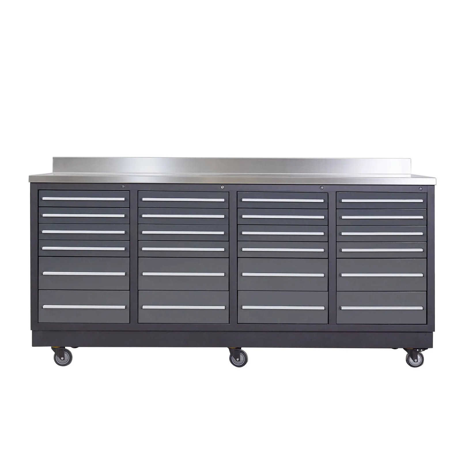 Pro Series 7-Ft 24-Drawer Workbench with Stainless Steel Top, Ball Bearing Double Slides & Casters, TMG-WB724